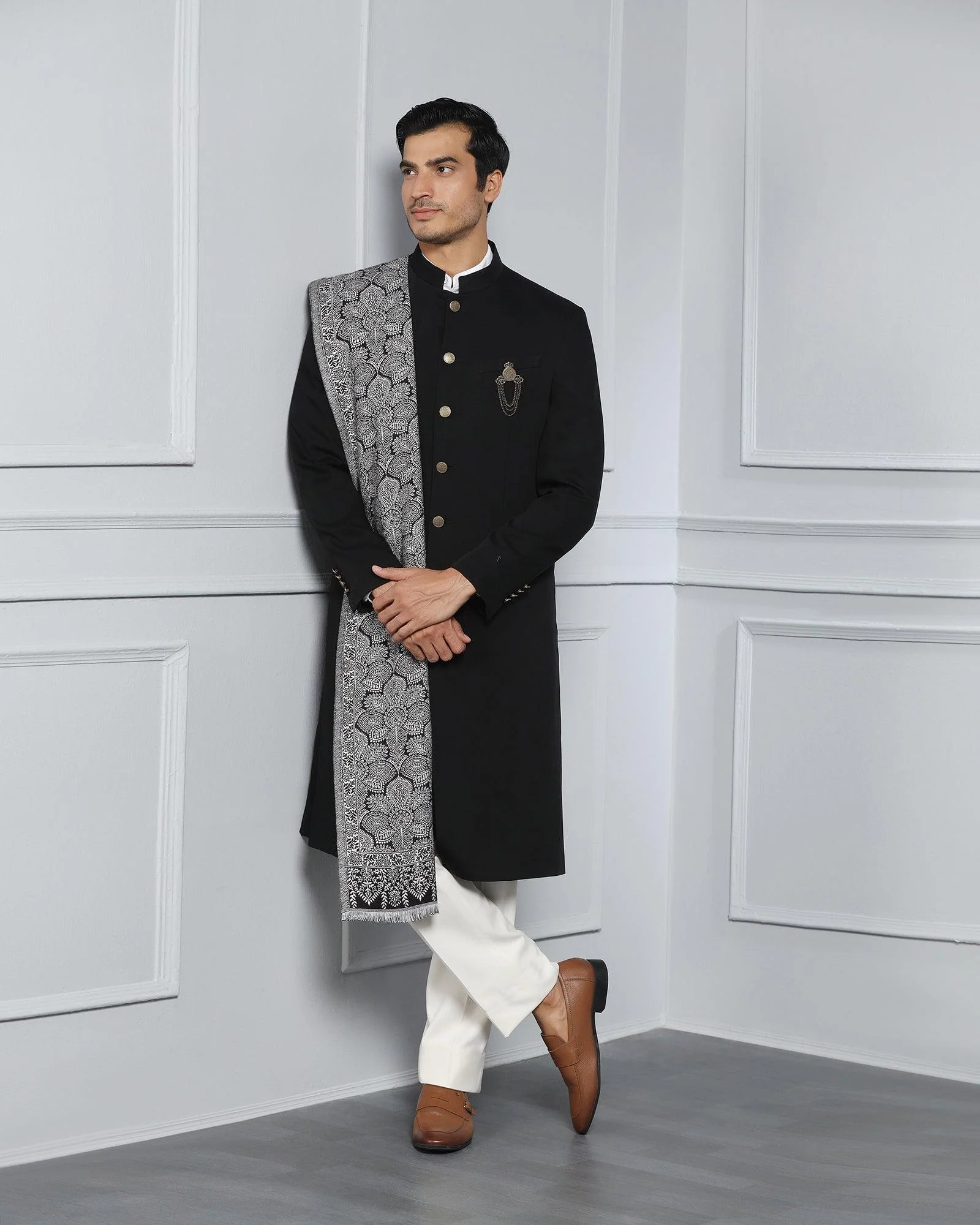 -70%Black Swarn Solid Achkan Set - Dagaris—