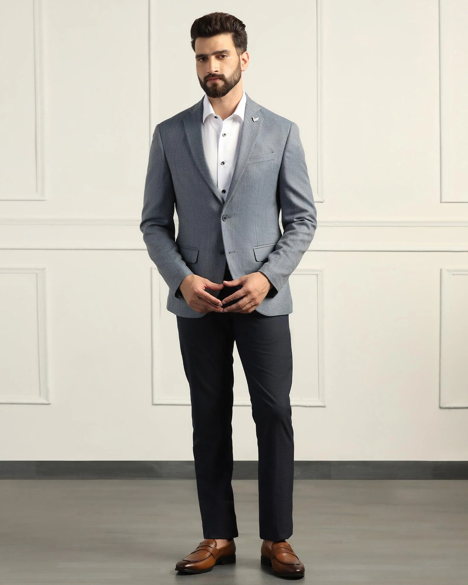 Formal Blue Textured Blazer - Corolla