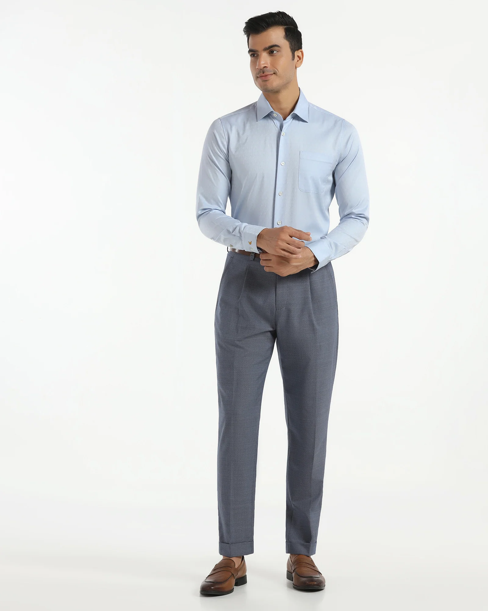 Sophisticated grace meets superior craftsmanship in this Jacquard Formal Shirt, made from premium luxe wool fabric. Designed in an India Fit, it features a high-stance collar for a sharp profile. Creaseless armholes offset seams for added comfort, and an extended placket ensure polished charm.