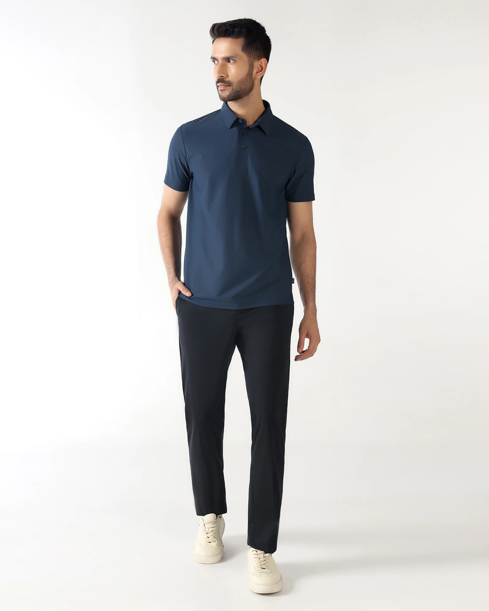 Understated charm in every thread – revamp your casual style with this Blue Tech Pro T-Shirt. Made from knitted fabric with a jacquard weave, this polo collar t-shirt delivers a polished silhouette. Its excellent stretchability and wrinkle-resistant features ensure daylong ease, while the smart dry fabric keeps you feeling fresh and comfortable. Ideal for casual outings or semi-formal settings, this piece is the epitome of versatile modernity.