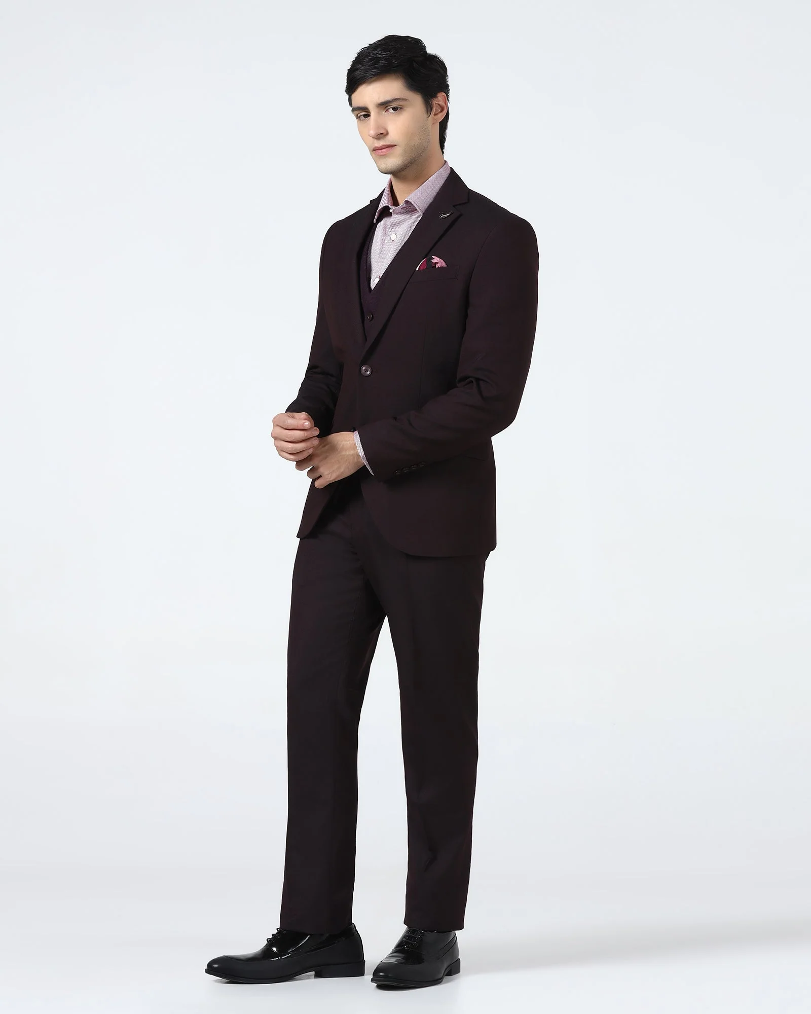 Wine Three Piece Textured Suit - Terrazo